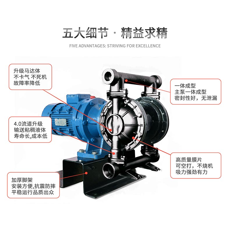• 8、由于隔膜將被輸送介質(zhì)和傳動機(jī)械件分開,所以介質(zhì)非常不會向外泄漏;且電動隔膜泵本身無軸封,使用壽命大大延長;根據(jù)不同介質(zhì),隔膜可分為氯丁橡膠、氟橡膠、丁晴橡膠、聚四氟乙烯、聚氨酯等,可以滿足不同客戶的要求。