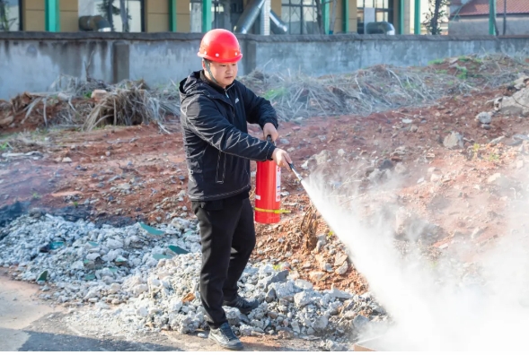 理論知識培訓結束后,在安全區(qū)域模擬了火災現(xiàn)場。參演人員紛紛參與到實戰(zhàn)演練中,一手拿捏著壓把,一手提著滅火器噴嘴,對著烈火根部均勻噴灑,體驗滅火的過程,真正學會了正確使用滅火器。