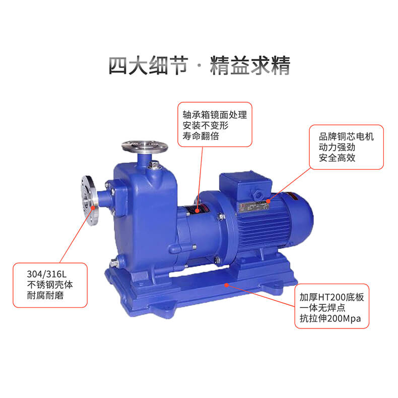 - CQZ系列自吸式磁力驅動泵簡稱為“CQZ自吸磁力泵”,是自吸泵與磁力泵的很好組合。采用磁力耦合傳動.不存在動密封點。因此即能防止了一般軸傳動式離心泵軸封外跑、冒、滴、漏的現象。又具有良好的自吸功能。其過流部件采用耐腐蝕不銹鋼,高純度工業陶瓷及填充四氟制成;具有良好的耐腐性。