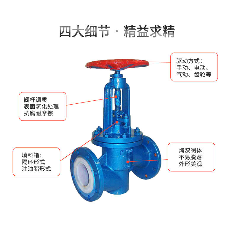 • J41F-16襯氟截止閥耐壓高、可靠性強,廣泛用于輸送各種強腐性介質的管路上。